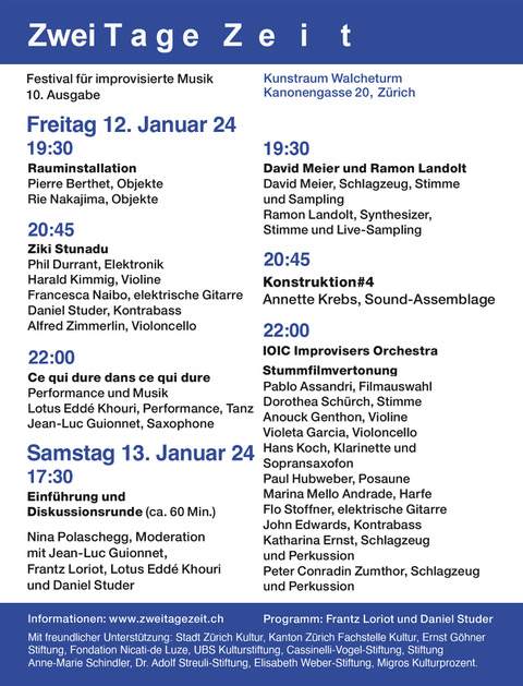 im Kunstraum Walcheturm Zürich. With a whole lot of musicians playing and videos and talks… till late.