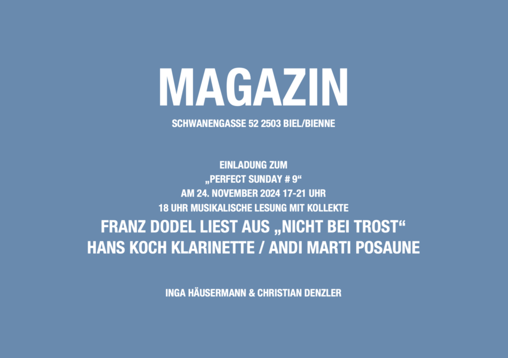 24.11.2024 – Konzert im Magazin mit Andi Marti trb/Hans Koch cl + Franz Dodel Literatur